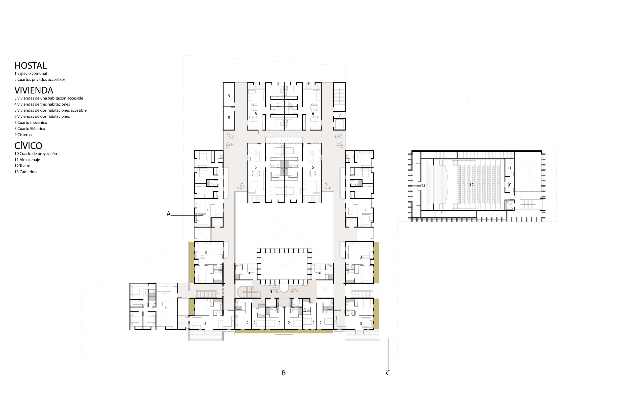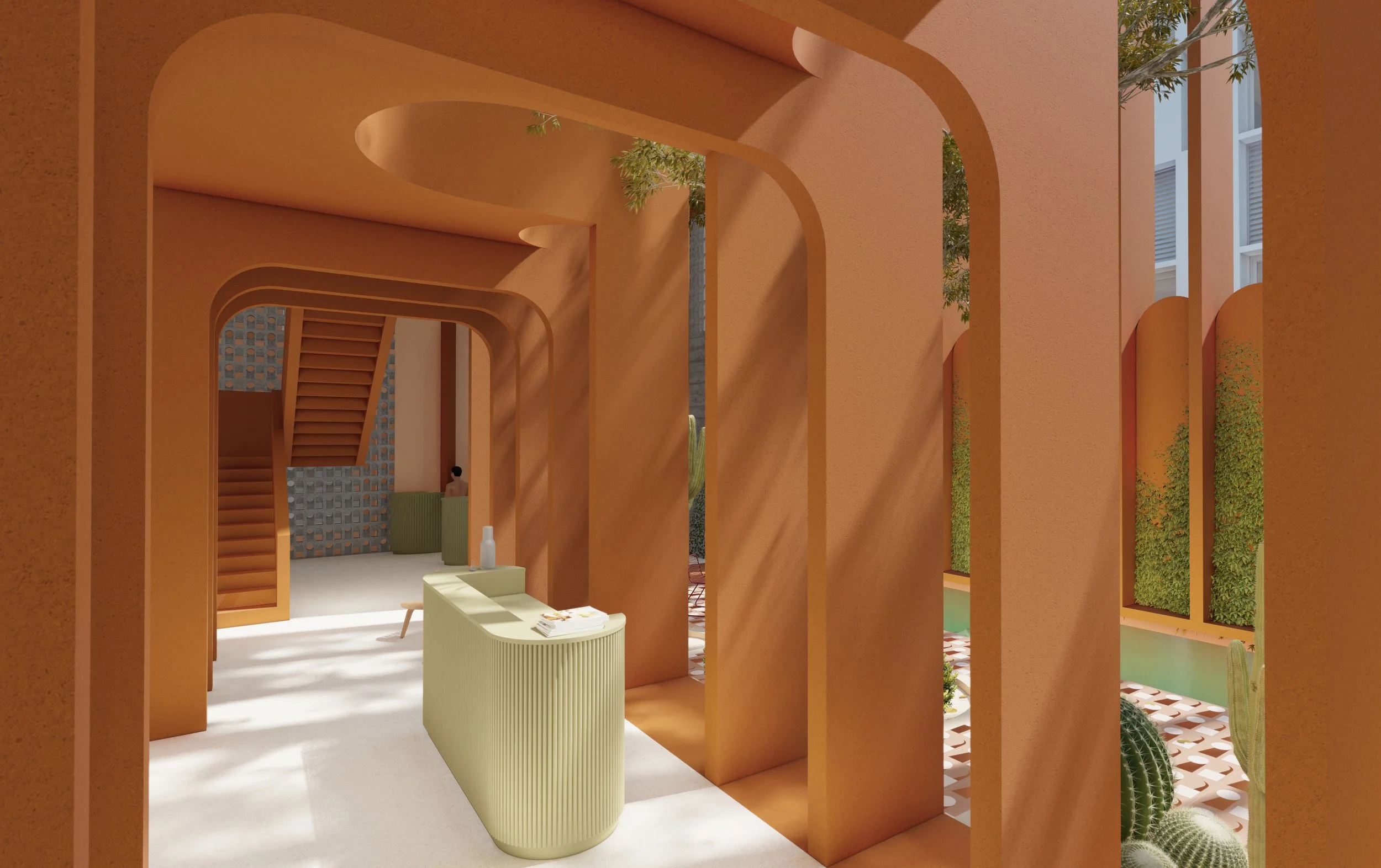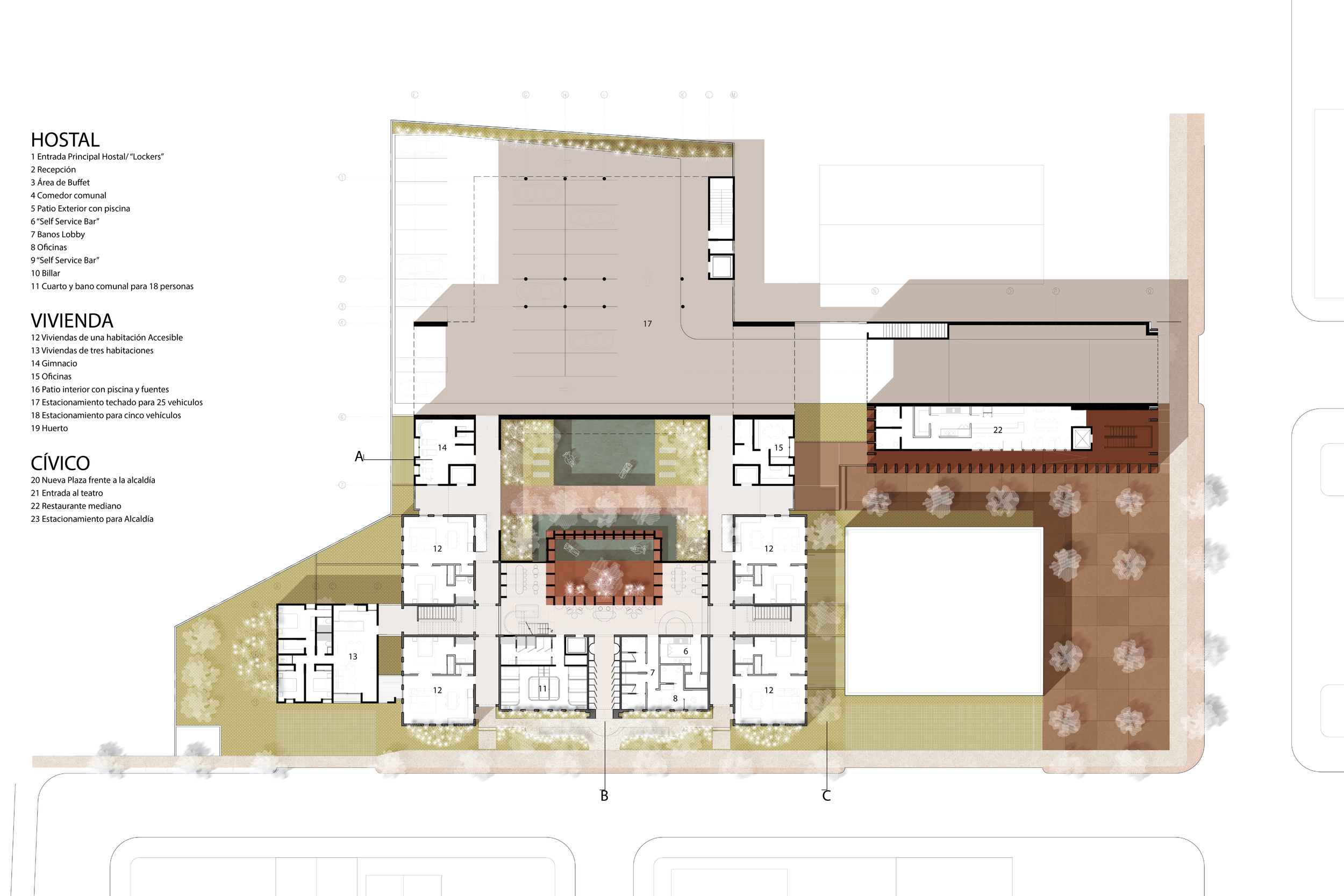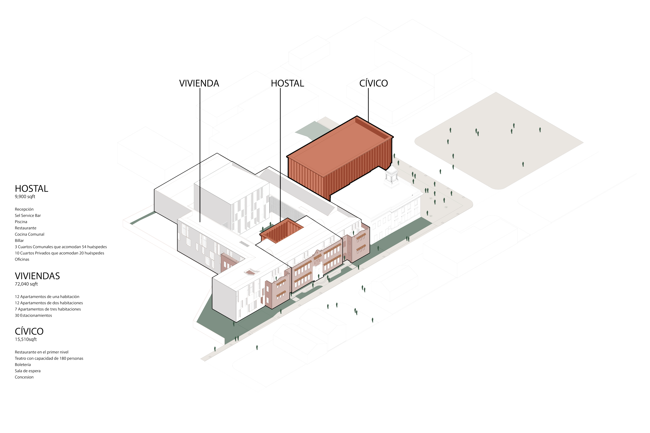 Arcoasis is a proposal that seeks to conserve and revitalize the old Guillermo Godreau school building, giving access to a new hostel, residences, and civic/cultural spaces. With this, densification and new entertainment spaces will be available to the existing and new community.